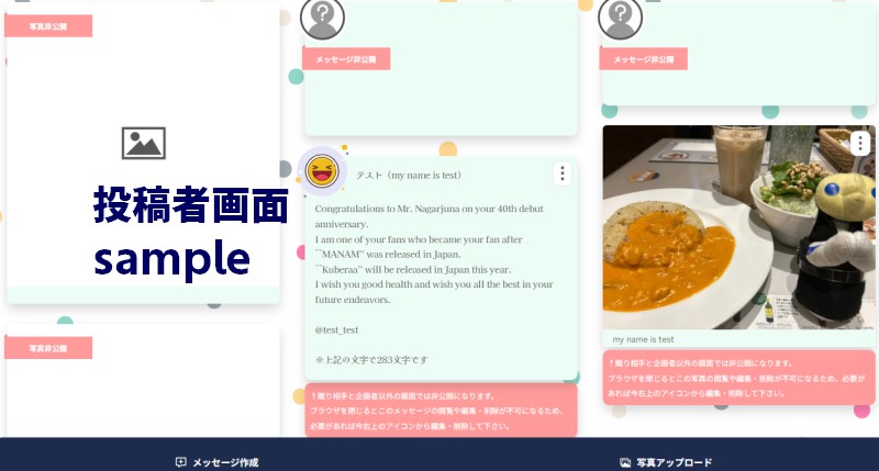 また、寄せ書きサービス利用にかかる費用は、すべて企画者個人が負担します。